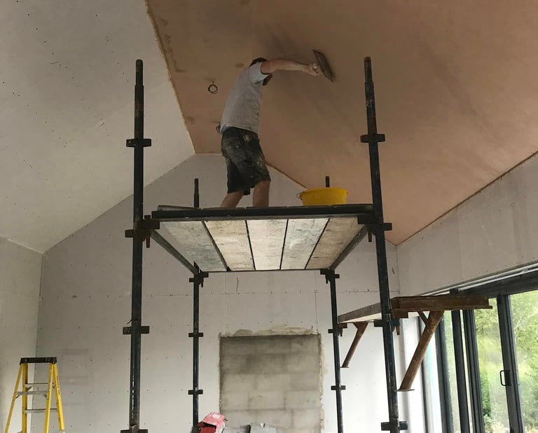 Plaster applied to a smooth finish ready for paint or wallpaper